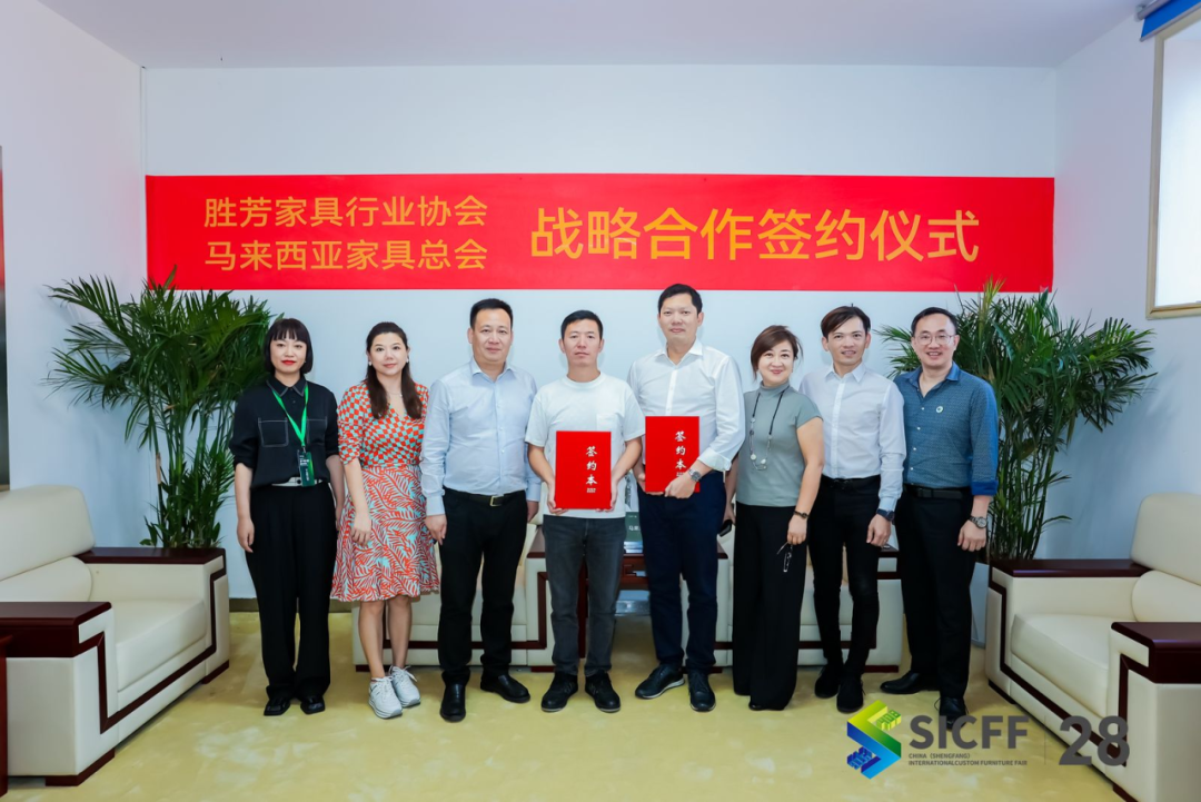展会期间,胜芳家具行业协会与马拉西亚家具总会举办战略签约仪式,在两地相互参展、企业间考察交流、组织专业论坛、开展跨境电商贸易等方面展开友好合作,打造互惠共赢、可持续发展的战略合作伙伴关系,共同推动两地家具产业繁荣发展。